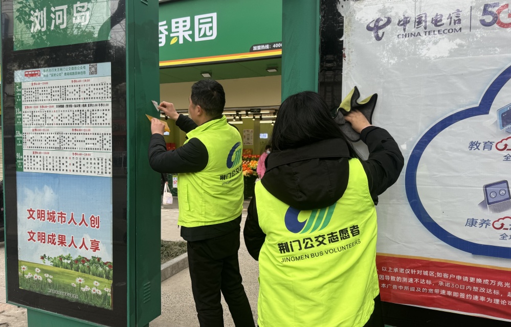 同日,市公交集團(tuán)還組織志愿者在體育文化中心、萬(wàn)達(dá)、中商、大橋巷、楚榮首府等人流密集站點(diǎn)開展志愿服務(wù),為城市增添亮色。志愿者們穿著“綠馬甲”,為南來(lái)北往的乘客提供文明勸導(dǎo)、線路問(wèn)詢、出行指引等便民服務(wù)。有的志愿者拿著抹布、鏟子等工具,彎下腰、踮起腳認(rèn)真細(xì)致地清理站棚上的小廣告,擦拭玻璃表面和邊框的塵土;有的志愿者發(fā)放乘客滿意度問(wèn)卷,征詢乘客意見,零距離了解乘客心聲,以便更好地提升公交服務(wù)水平,用自己的實(shí)際行動(dòng)踐行雷鋒精神。