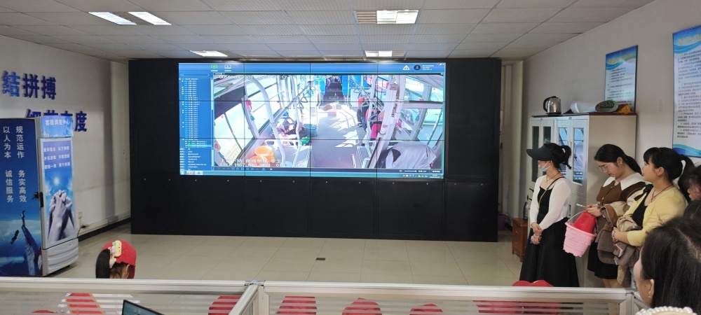 圖/在客服調(diào)度中心,整墻的大屏幕,變動(dòng)的車輛信息和實(shí)時(shí)車載畫(huà)面,深深吸引了同學(xué)們的目光。