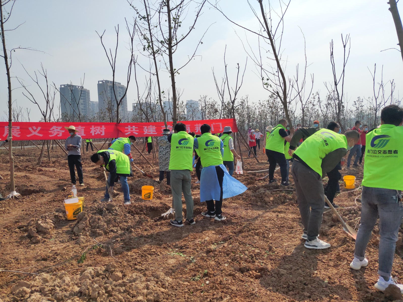 4月29日,荊門晚報(bào)第十二屆讀者林植樹活動(dòng)開展,在漳河大道仙楊路植樹點(diǎn),上百晚報(bào)讀者、志愿者隊(duì)伍參加了植樹活動(dòng)。荊門公交集團(tuán)14名公交志愿者積極參與活動(dòng),并調(diào)派兩輛公交車進(jìn)行義務(wù)接送..
