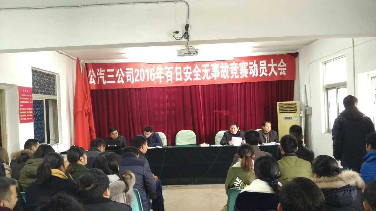 11月25日,荊門公交集團公司公汽一公司、公汽二公司、公汽三公司及出租公司組織全體駕駛員,召開市“百日安全無事故競賽”暨2016年春運工作動員大會,提前進入春運。